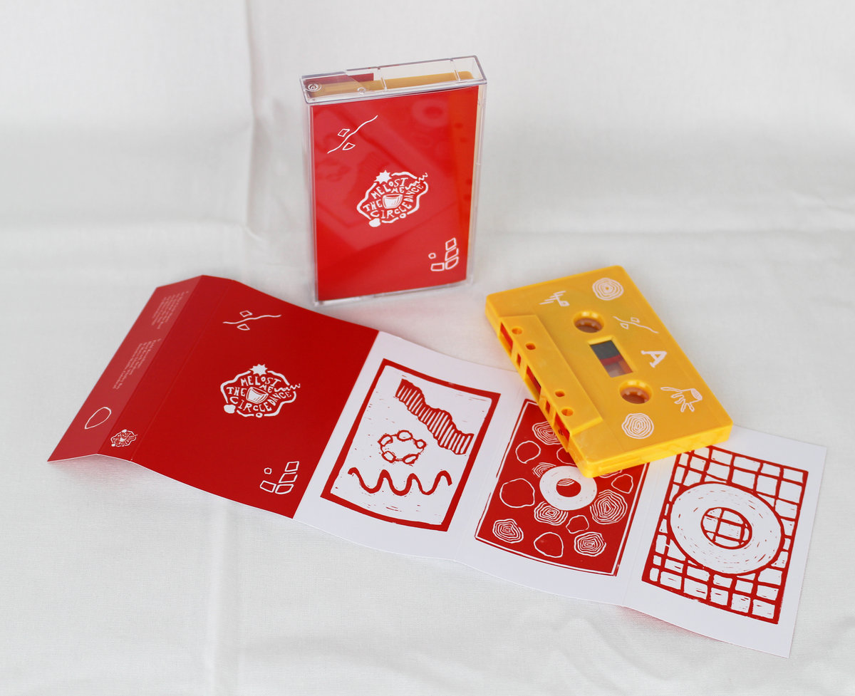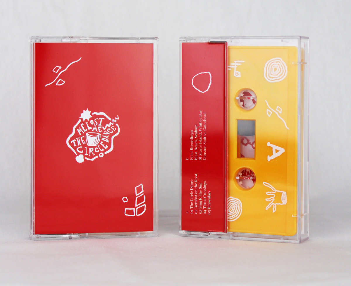100 limited run of cassette tapes. Side A consists of tracks 1-5 of the Circle Dance EP, Side B is a collage of the full field recordings featured throughout the EP. Lino prints feature on outer side of fold out booklet, with AI generated images based on dataset of photographs by Amelia Read feature on the inside.